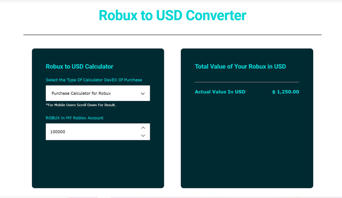 Robux to usd converter is a simplification to your calculations to earn real money while enjoying the Roblox gameplay. These tools take all the pain to calculate your Robux value in real money and leaves all the fun in your hands.